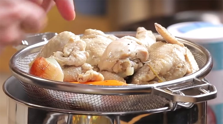 Опытные повара придумали добавлять в куриный суп неожиданный игредиент – манную крупу. Они заметили, что манка делает суп заметно более ароматным и увеличивает густоту бульона, прибавляя сытость блюда. Мы заранее приготовили куриный бульон, который сейчас превратим в шикарный суп.