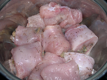 Отбитые кусочки филе посолить и поперчить, складывая друг на друга