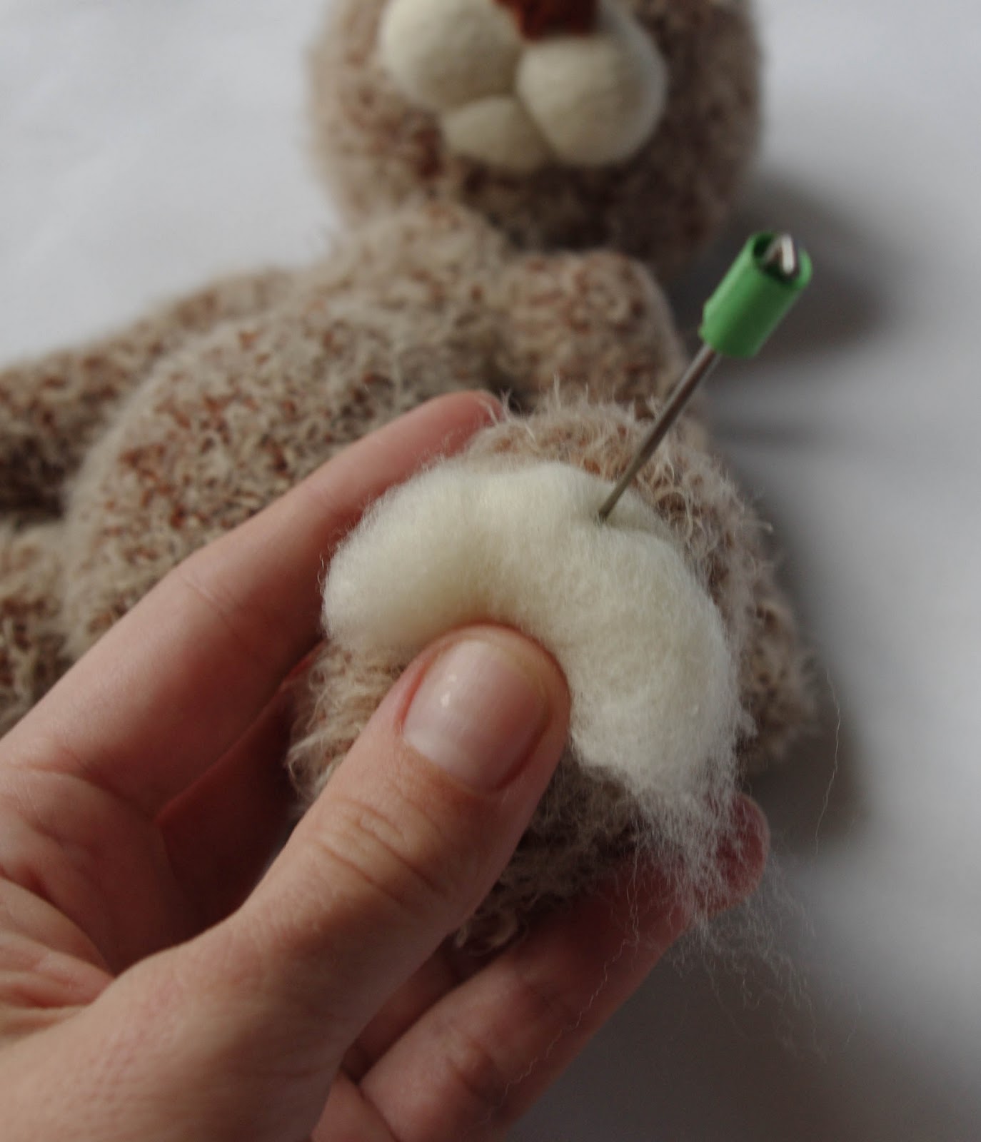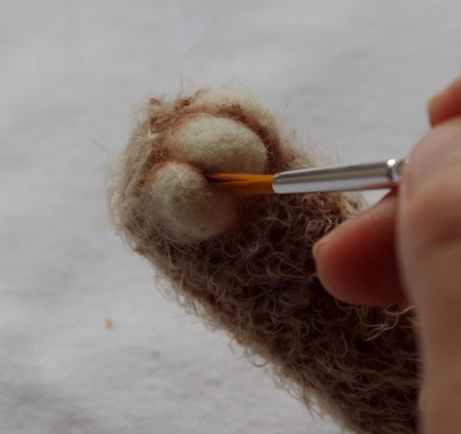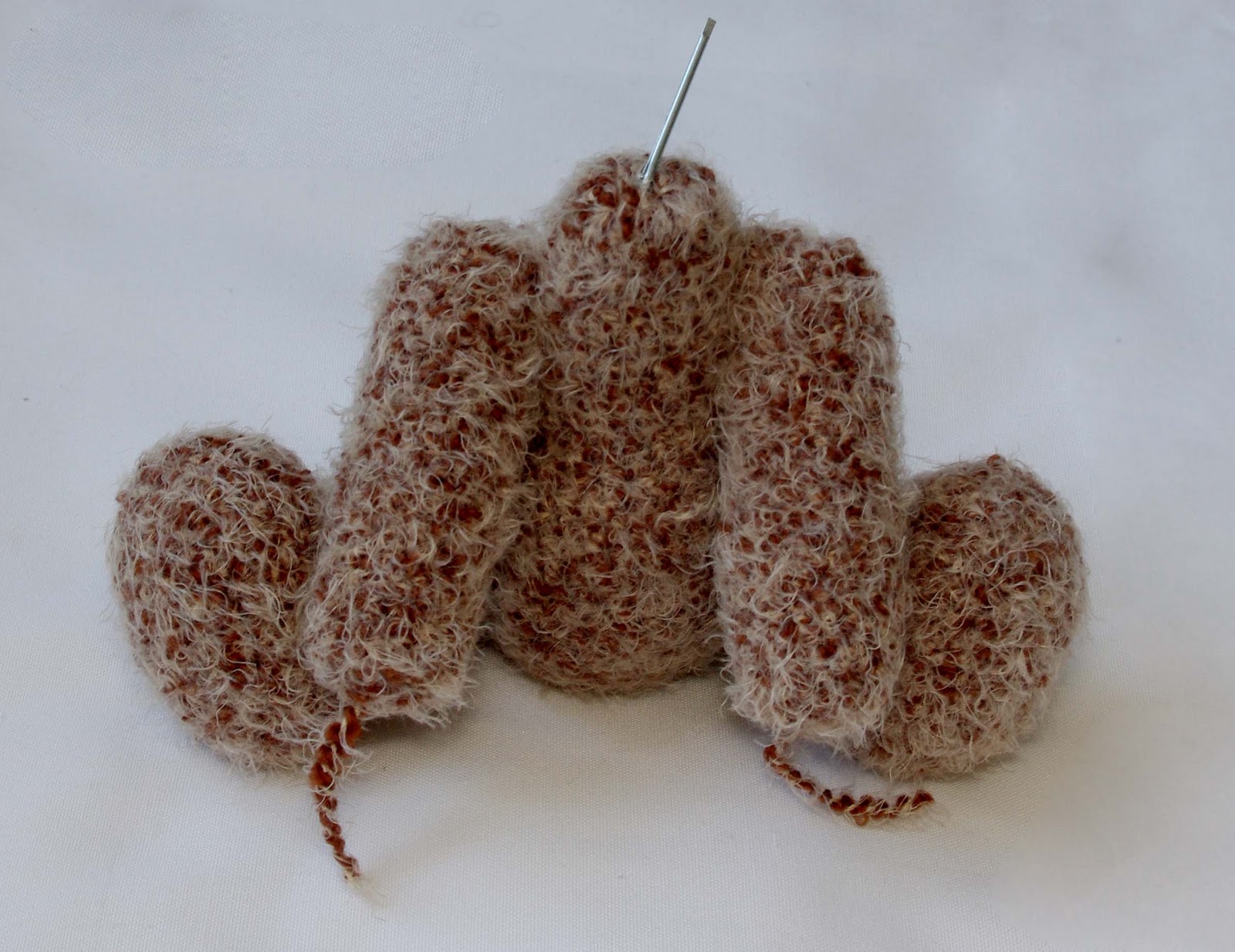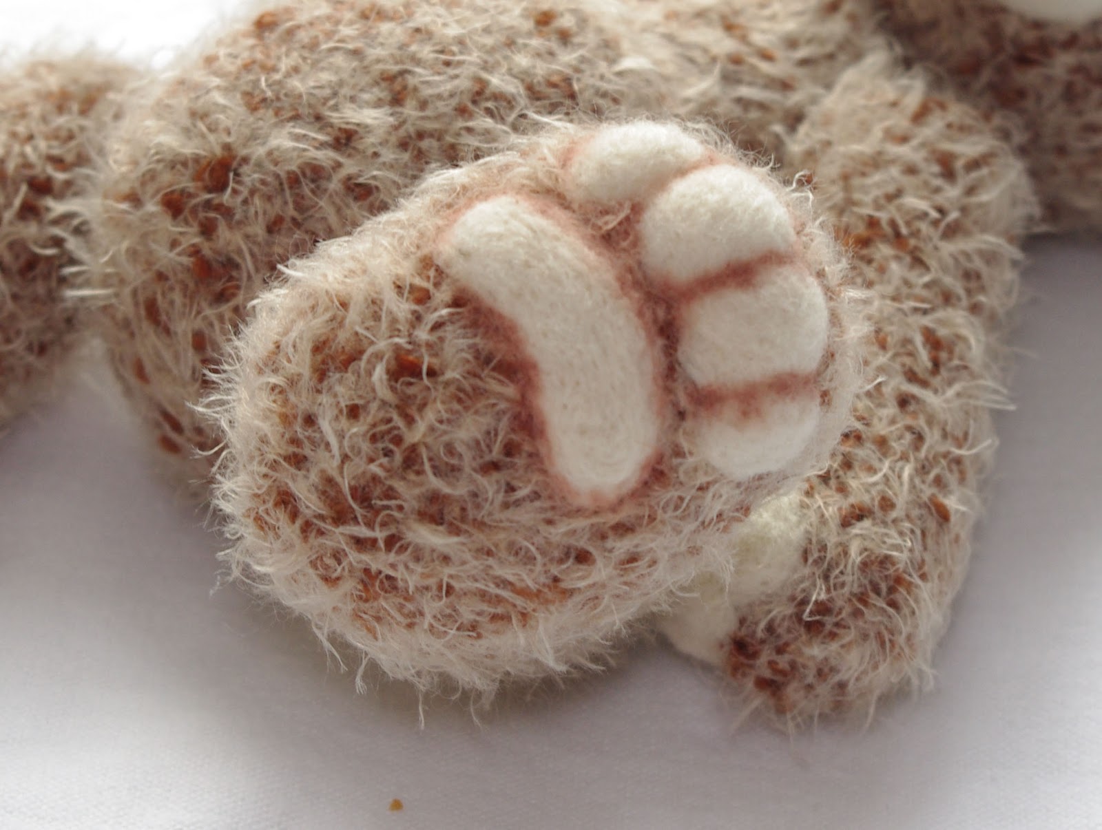 получились пальчики. Отрываем еще кусочек шерсти и формируем стопу