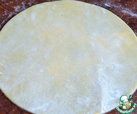 Печем коржи : Духовку включить на разогрев. Каждую часть теста раскатать тонко, я это делаю сразу на бумаге или коврике. Вырезать круг, 30 см.. Приготовить сразу 3-4 заготовки. Получится 9 целых и остатки. |