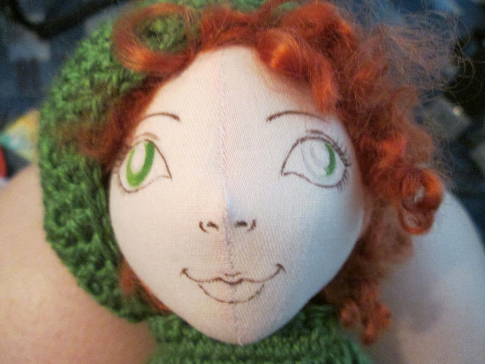 Теперь непосредственно личико.Я рисую его от руки простым средне-мягким карандашом,очень остро заточенным,чтобы линии были тонкими(ластик кстати их убирает,а ткань натянута очень плотно,так что это способствует)