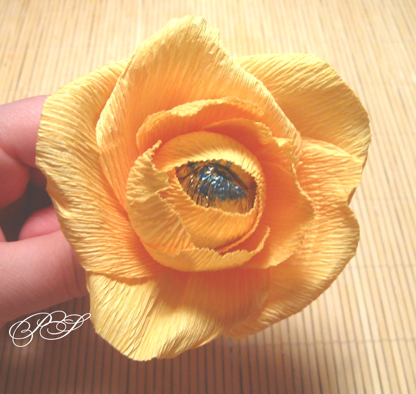 Все розы я делаю из гофрированной бумаги по одной и той же технологии.Эти и многие другие премудрости и секреты свит-дизайна я узнала на Осинке, у девочек, на подфоруме