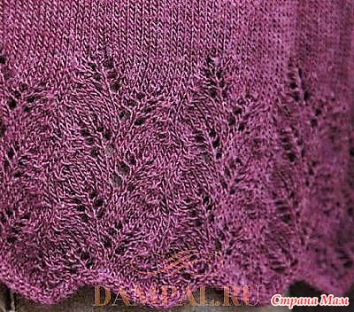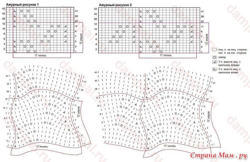 Связать 42 ряда ажурного рисунка 1 (1, 2, 2, 1), закончить изнаночным рядом.