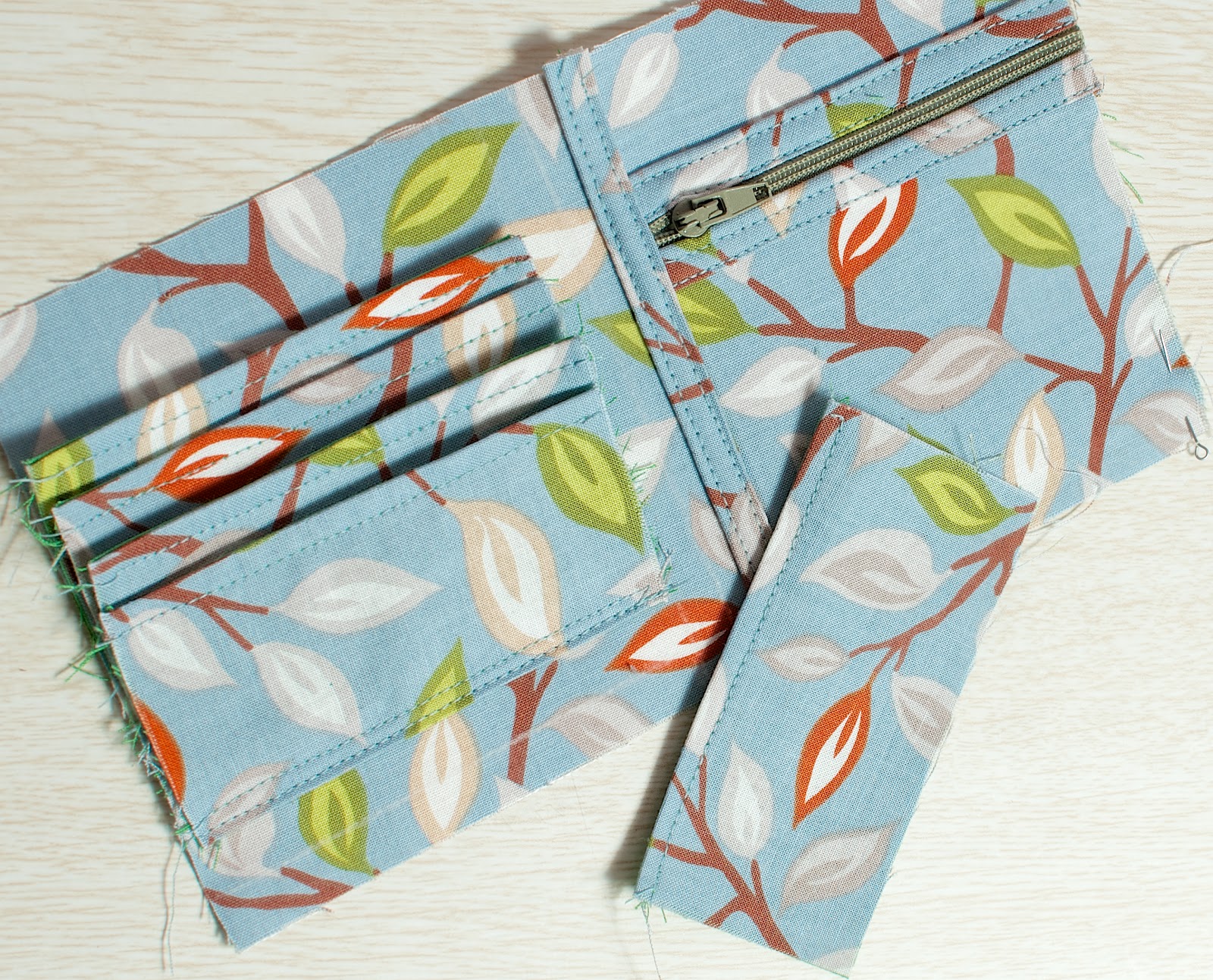 3. На отделения для карточек: 5 деталей из основной ткани 6,5х10см , 5 деталей из подкладочной 6,5х10см.