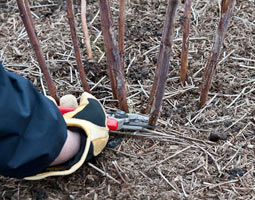 Вырезка у крупноплодной малины старых и толстых побегов - оставляем 7-8 побегов