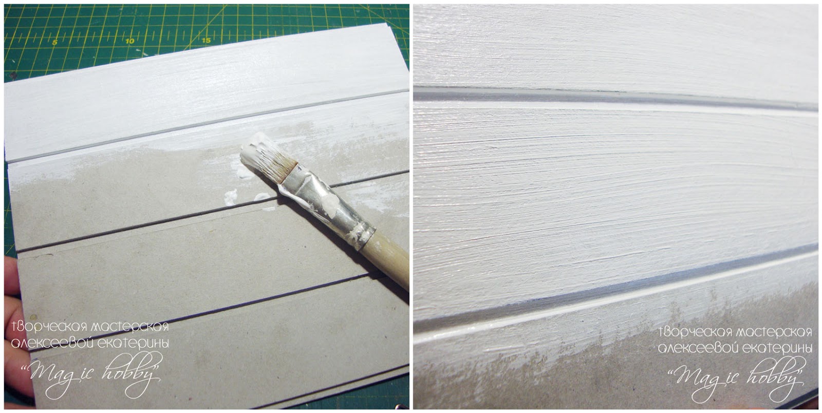 Когда клей высохнет покрываем нашу заготовку грунтом. Движения кистью должны быть сделаны в одном направлении, на данном этапе мы уже начинаем формировать текстуру дерева.
