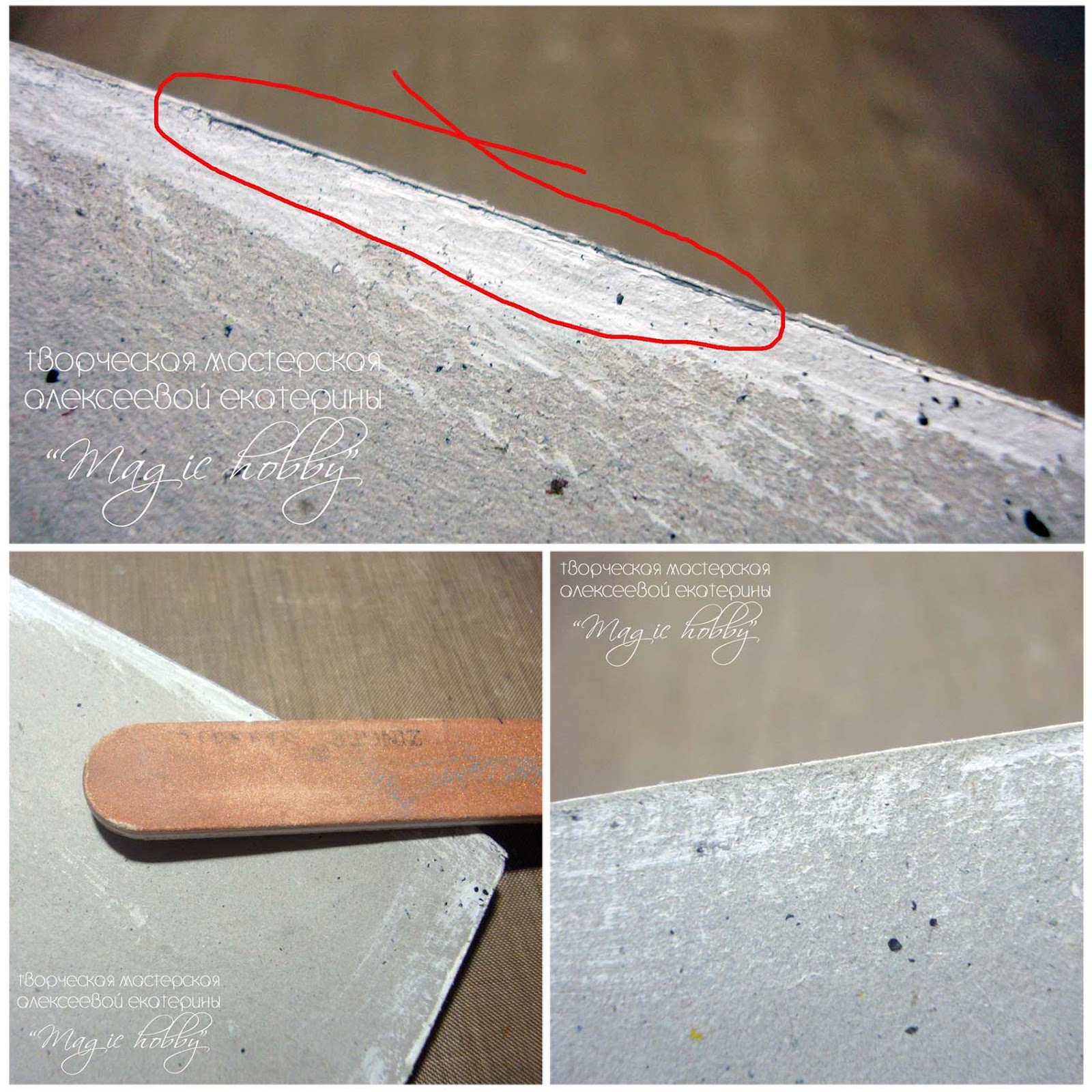 Когда все просохло нам необходимо обратную сторону нашей заготовки сделать такой же презентабельной как и лицевая. Когда мы работаем с красками у нас хочешь или не хочешь с обратной стороны появляются вот такие "наплывы" краски. Чтобы их убрать воспользуемся ненужной пилкой для ногтей или наждачной бумагой "нулевкой". Аккуратными движениями убираем эти наплывы. Тут необходимо действовать аккуратно, иначе можно нечаянно убрать краску и с лицевой стороны нашей заготовки.