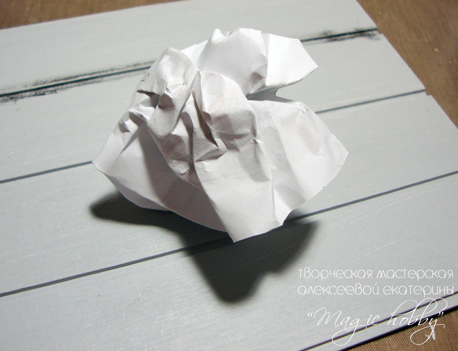 Затем берем обычный лист офисной бумаги и комкаем его.
