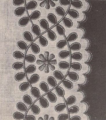 Рис.12. При изготовлении цепочки из дырочек внешний край их вышивается фестонами или петельным швом, а внутренний - швом "прямой шнурочек".