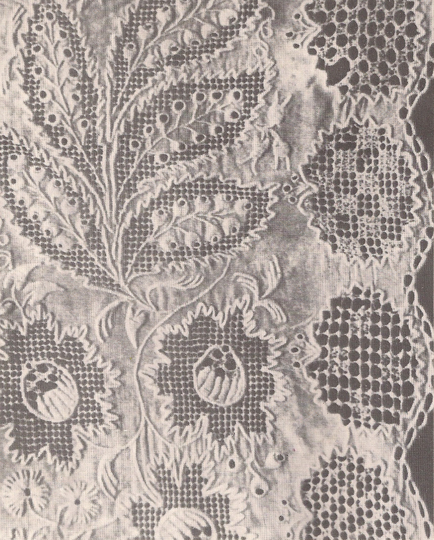 Рис.13. Рельефный край фестонным швом. Основа делается наметкой и тамбурным швом, а затем на ней вышиваются фестонные стежки, потом по краю обрезается лишняя ткань.