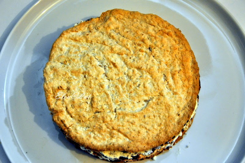 Выпекать каждый корж 5 минут. Достав из духовки дать немного остыть и с помощью широкой лопатки отделить корж от бумаги. Нужно очень осторожно отделять, т.к. коржи очень ломаются. Но если такое произойдет не переживайте, сложите их как пазл.