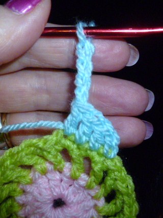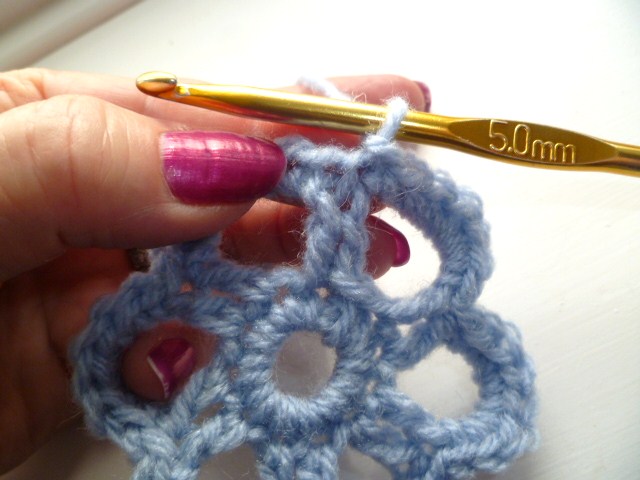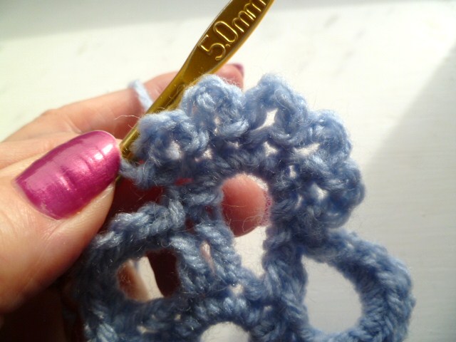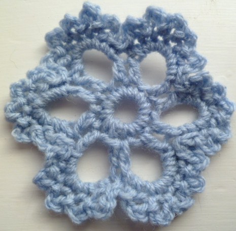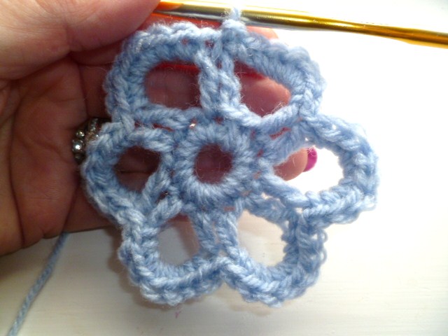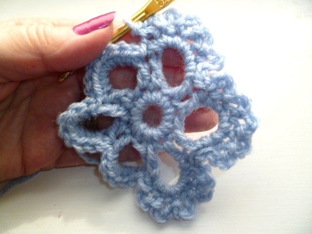 the small loops are made on the top of each petal with a missed st to allow for the petals to lie flat