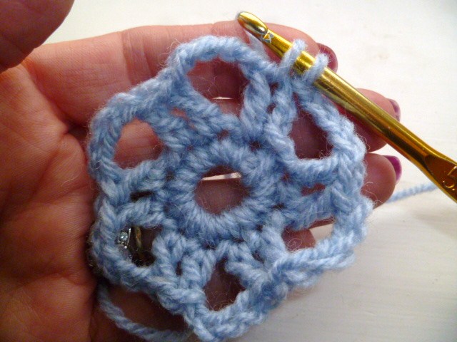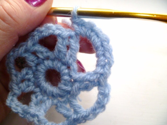 miss a st, sl st into the next st and repeat for next 5 petals (6 petals in total)