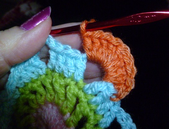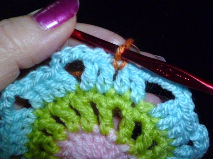 sl st intospace between the 2 dc of round 2,
