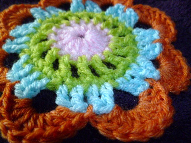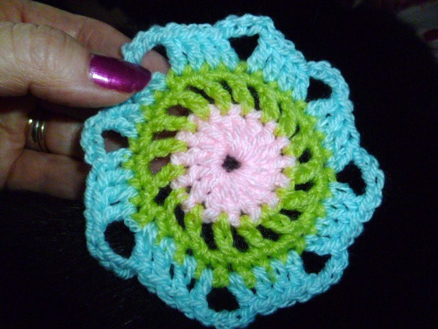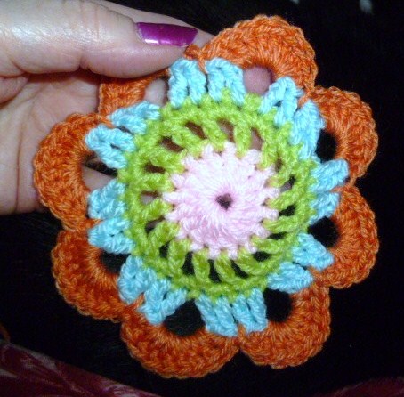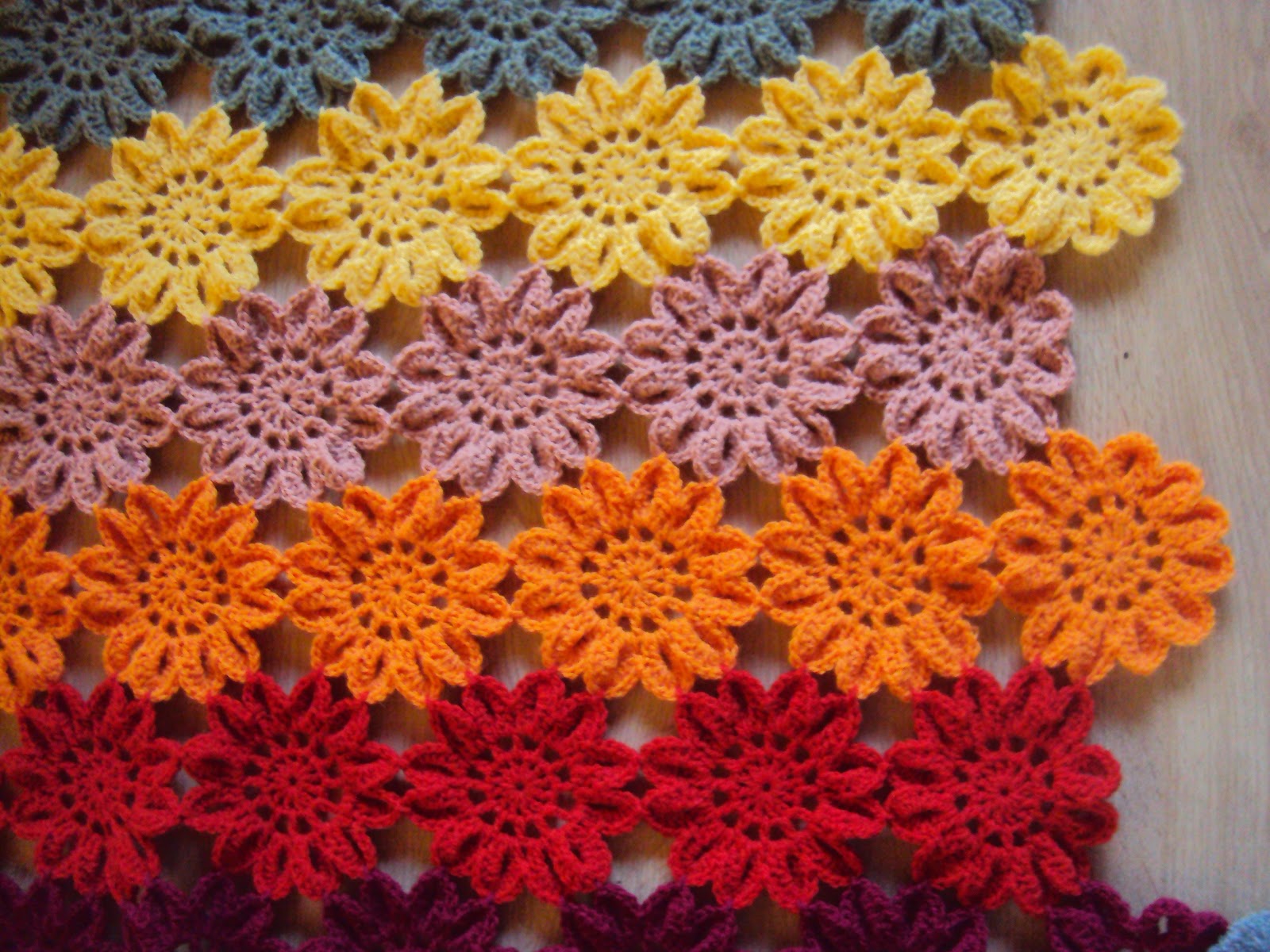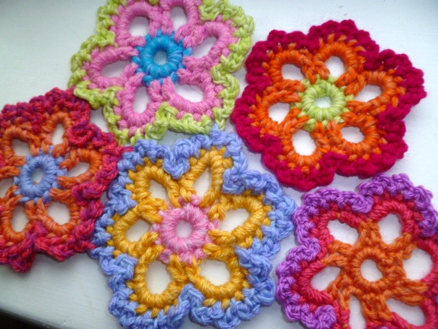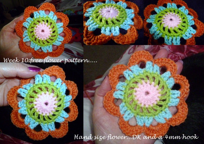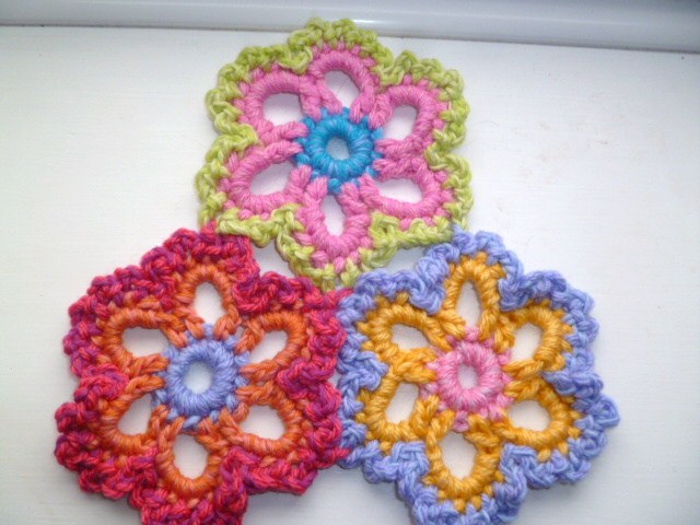 these hand size flowers can be joined together in rows, side by side to make a blanket wrap or jacket