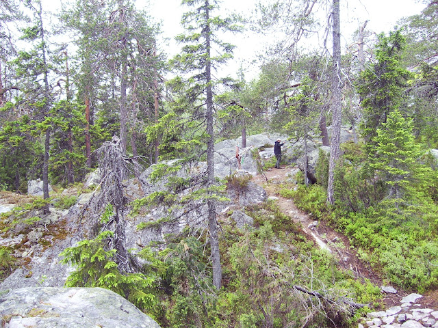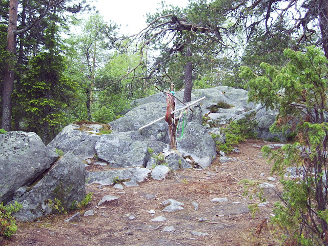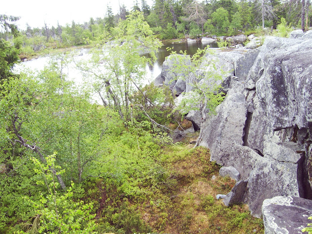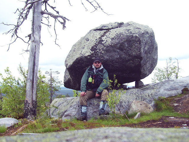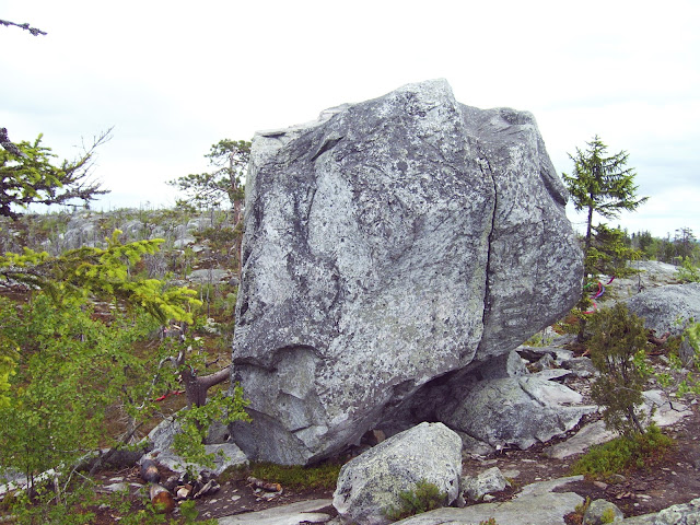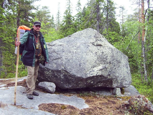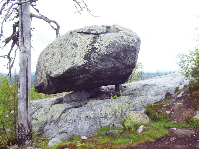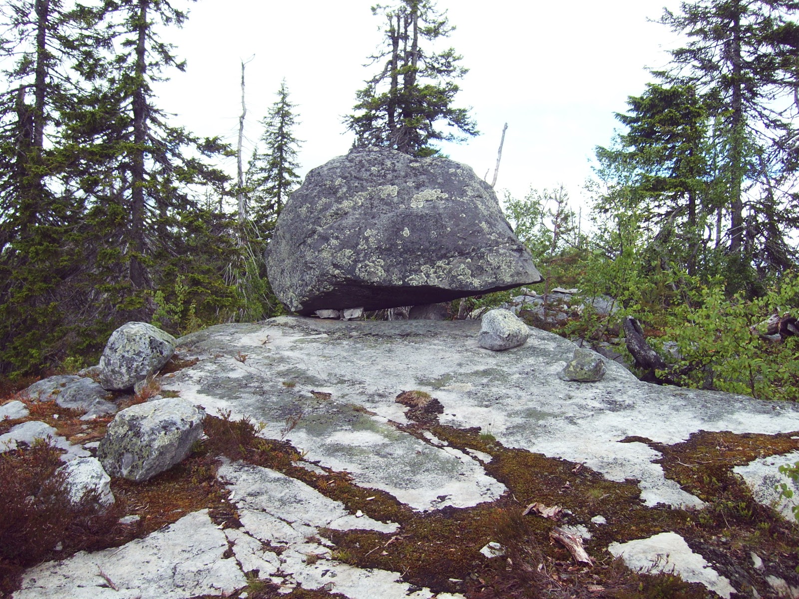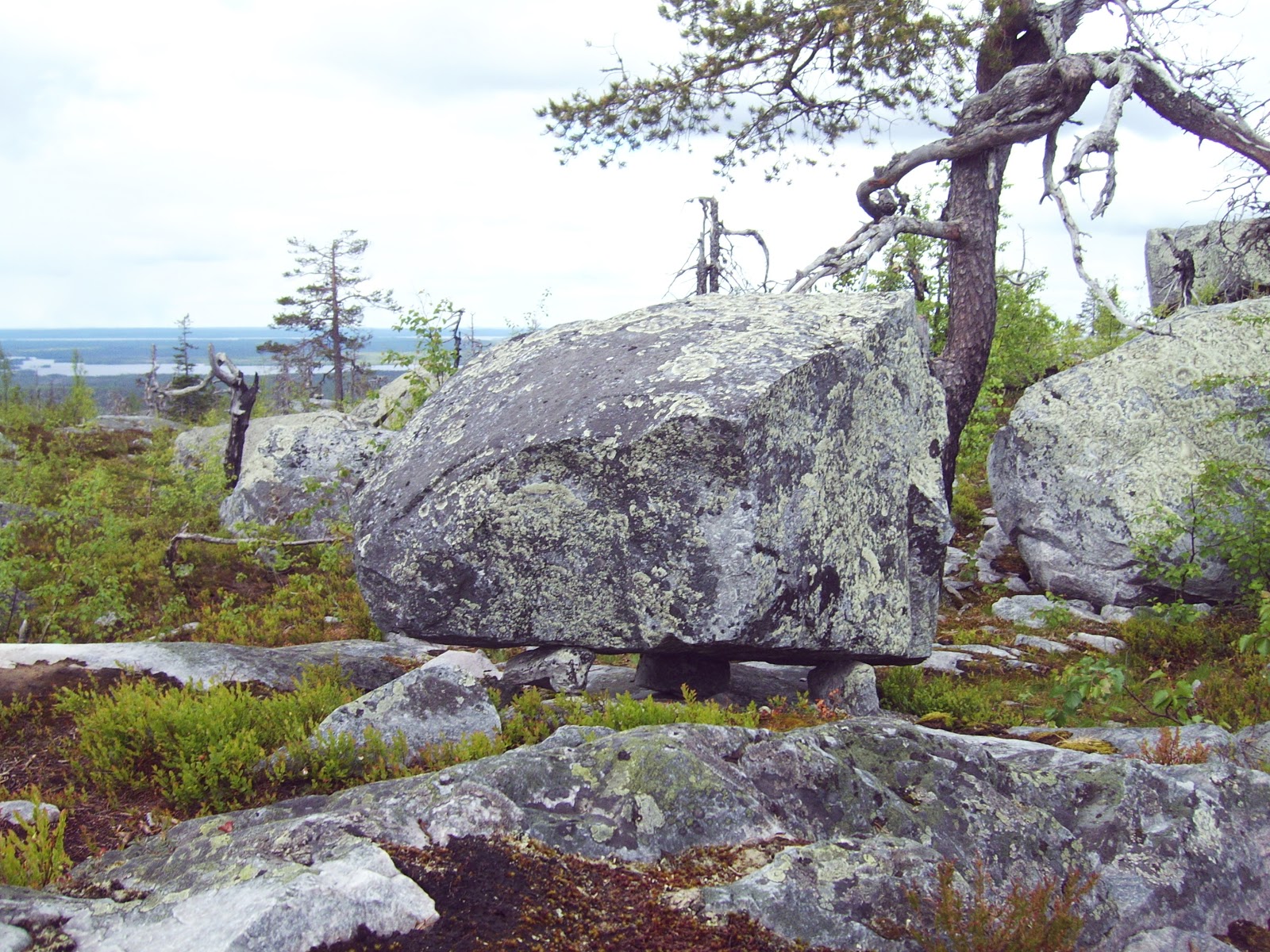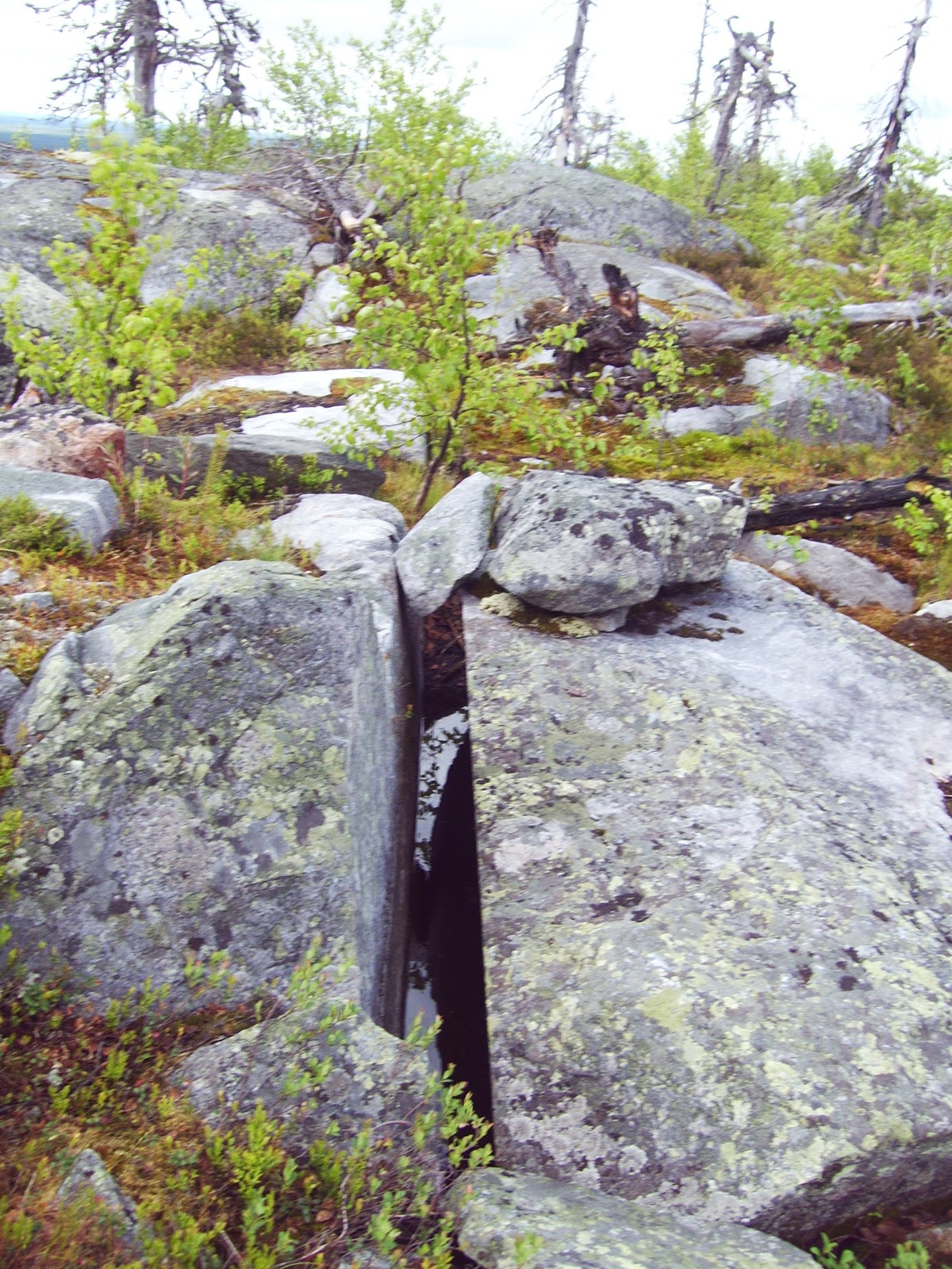 Высохнув окончательно, днем наметили осмотр достопримечательностей, собственно для этого и приехали. Посетили Шамана, лабиринт, колодец, множество сейдов. Когда на самой горе кажется осмотрели все, решили пойти к лестнице, она в стороне от остальных мегалитов. Взяв с горы координаты лестницы рванули через лес напрямки, и весьма удачно так как прошли меж двух болот и даже не намокли. Если честно, то «лестница» разочаровала своей маломерностью, кусок скалы из земли.