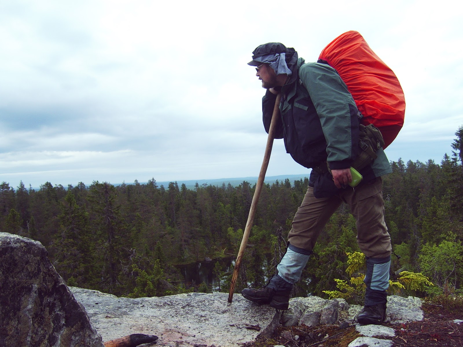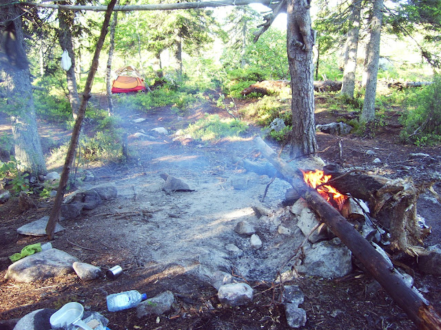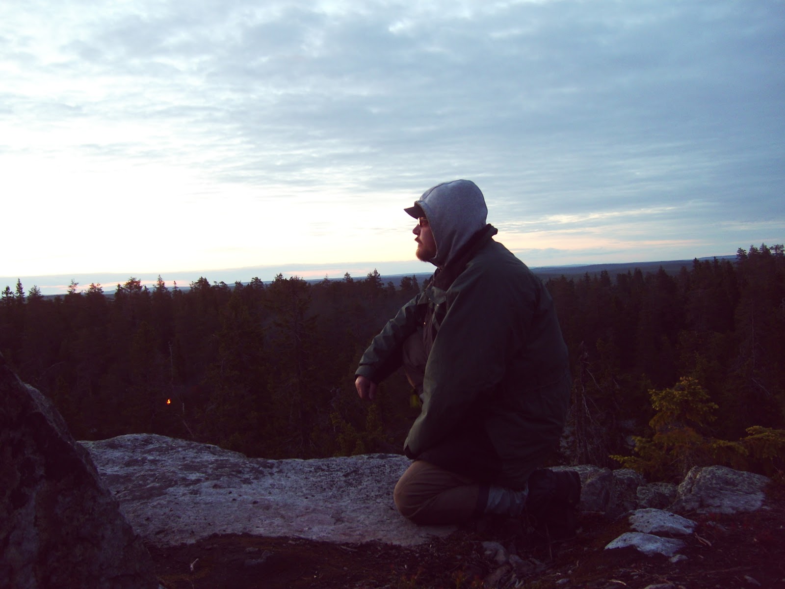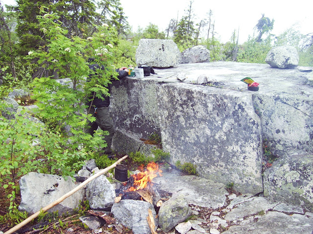 Развели мега-костер, и напарник долгое время сушился. Рано утром уже было солнце, видимо боги смилостивились над нами увидев нашу решительность. Все последующие дни пока мы были на горе погода была изЮмительная, солнечно и небольшой ветерок. С появлением солнца появились и комары, а также знаменитая карельская мошка.