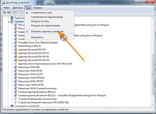 «Диспетчер устройств» и нажмите на «Вид ~ Показать удаленные устройства». Теперь, видя отдельные