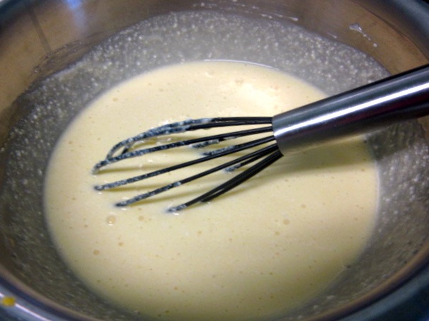 В миске слегка взбиваем яйца. Добавляем рикотту, сметану, сахар, соль, ванильную эссенцию и цедру лимона. Перемешиваем.