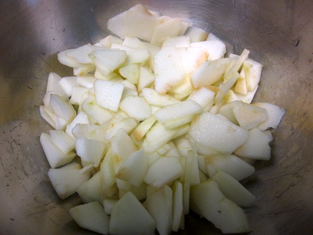 Яблоки чистим, удаляем серединки и режем тонкими небольшими ломтиками. Сбрызгиваем яблоки лимонным соком и ненадолго оставляем.