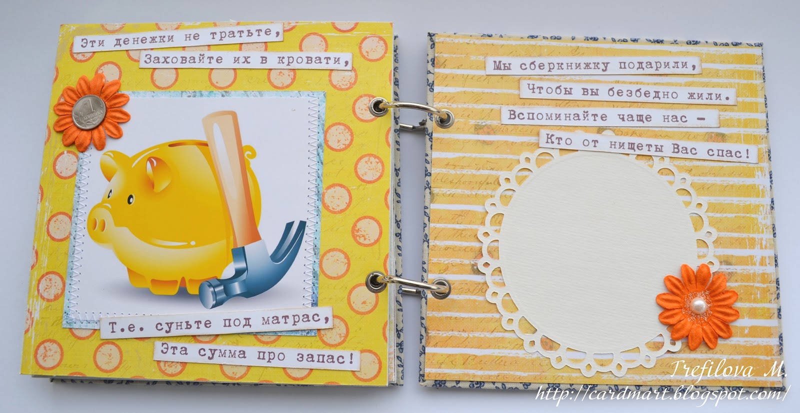 за картинкой свиньюшки тоже карманчик, на другой стороне оставлено место для подписей (вырубка-круг).