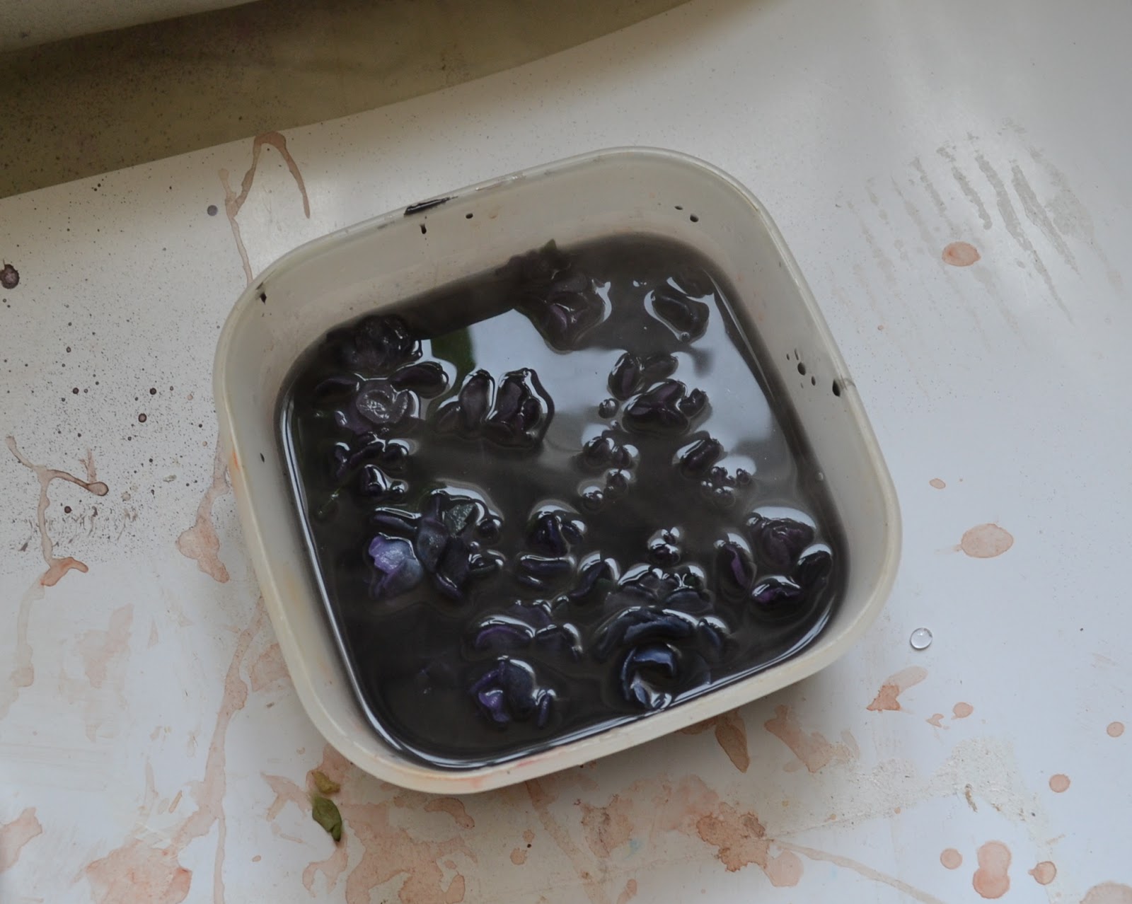 Достаем из кипятка (желательно, вилочкой , а не руками :))), выкладываем на бумагу и даем немного стечь краске