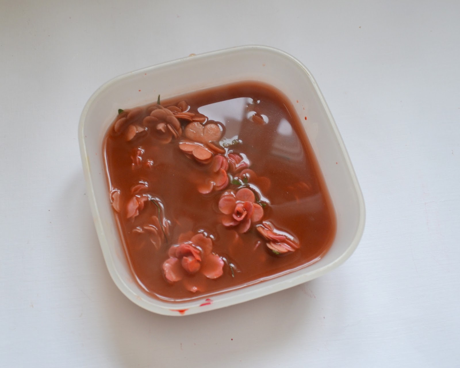 Заливаем кипятком --> получаются вареные розы. Одной минуты купания в кипятке будет достаточно