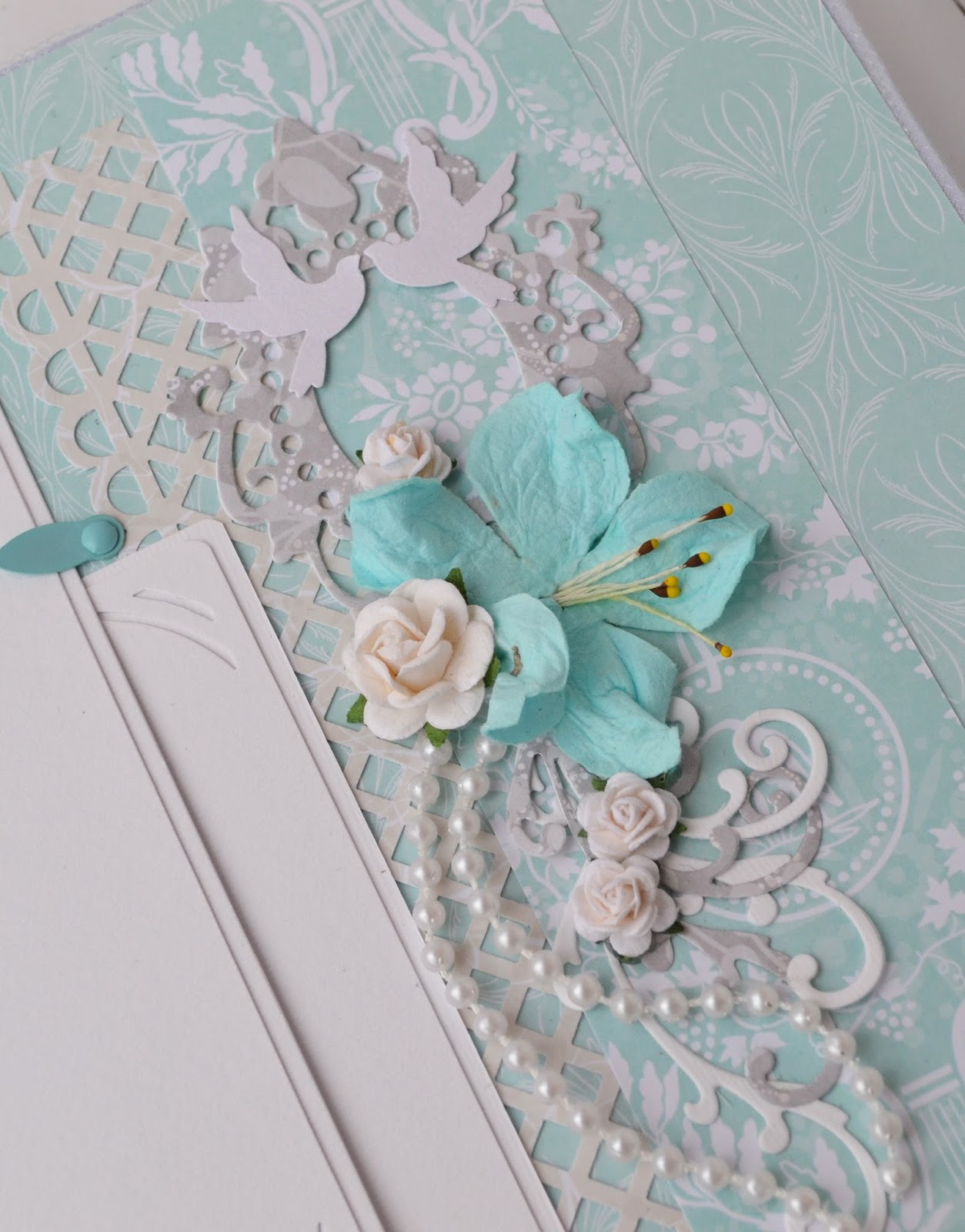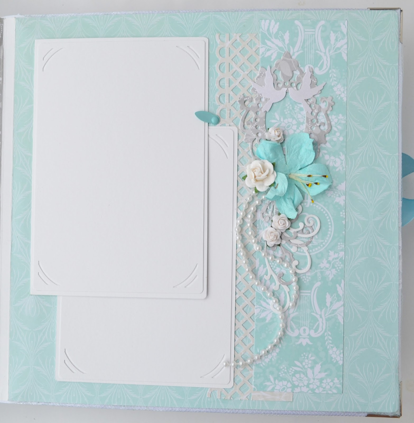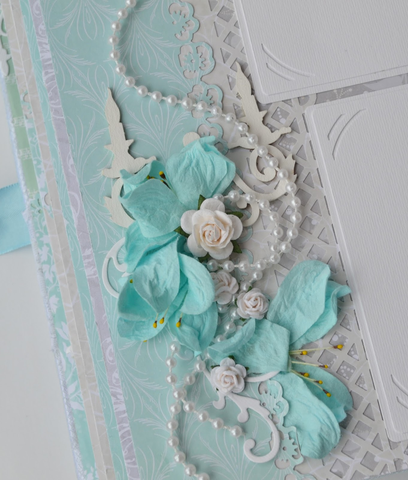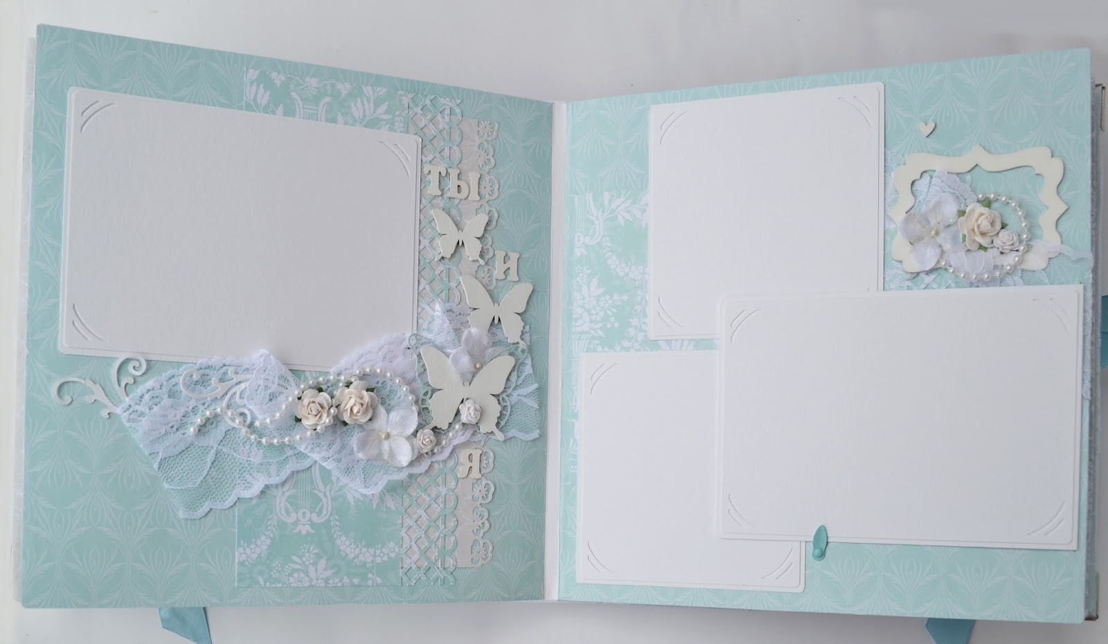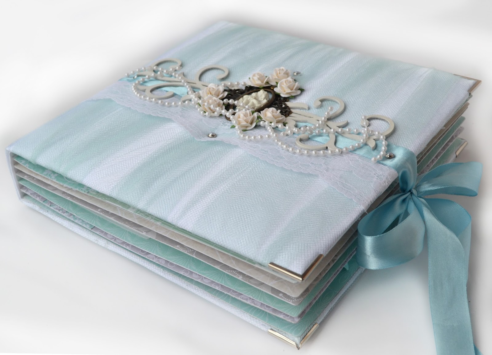 Я сделала таки свадебный альбом. Как-то неправильно, что мне заказывают чаще мужские альбомы-я же больше люблю всякие цветочкоажурности))) Вот и сваяла- и для души, и для примера. Фоточек будет много, но даже такое их количество не передает всей прелести альбома. Он-именно такой, каким и задумывался,начиная от качества исполнения (а это для меня всегда приоритет!!!!) и заканчивая декоративными мелочами. Конечно, в бирюзовой гамме;)