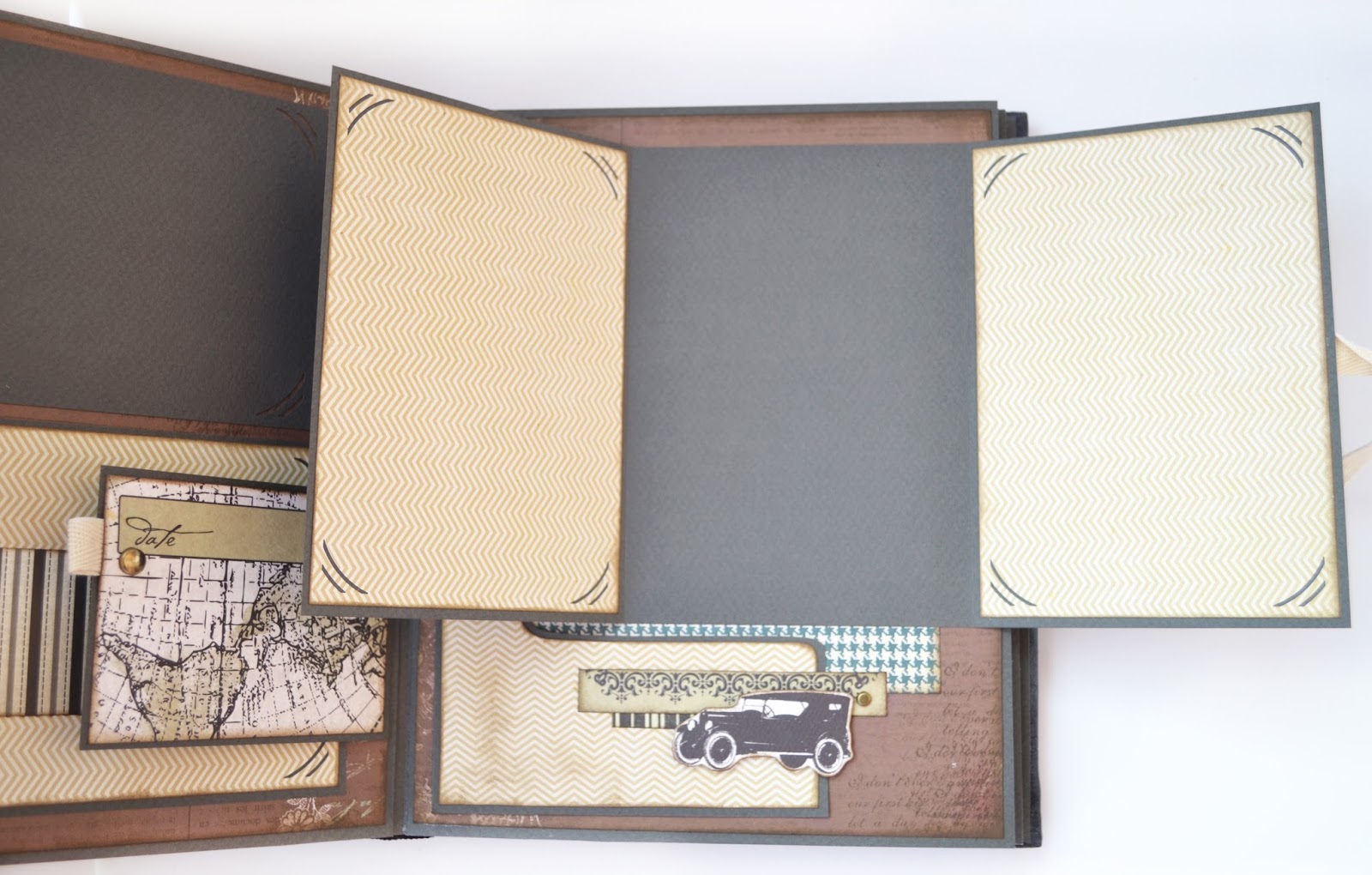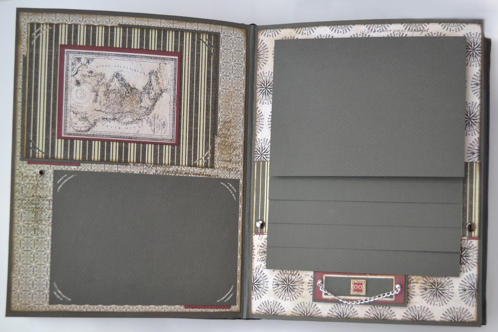 справа большой горизонтальный карман и раскладушка на застёжке -на небольшое фото и журналинг, слева раскладушка на 3 фото 10х15-её фиксирует стрелочка