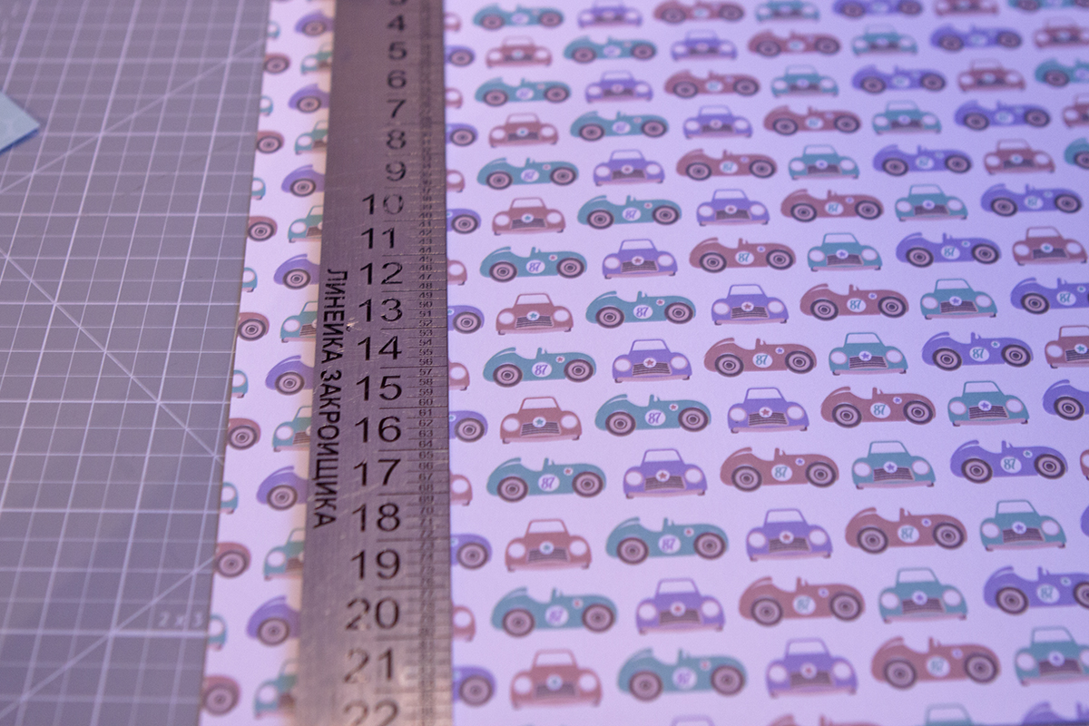 1. Подбираю лист подходящий по декору. По ширине он меньше основного на 2 см.