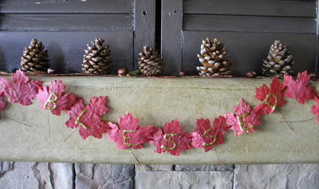 Можно очень быстро украсить дом или участок в тематическом осеннем стиле! Для этого создайте гирлянды из листьев, насадив их на нить, или сделайте бусы из ягод. Создайте вертикальные гирлянды, используя толстую нить, на которую через некоторые промежутки приделайте желуди, каштаны, шишки, ягоды или камешки.