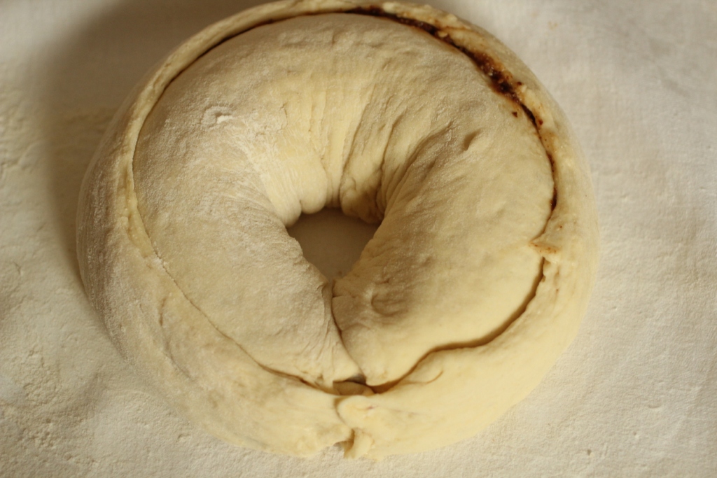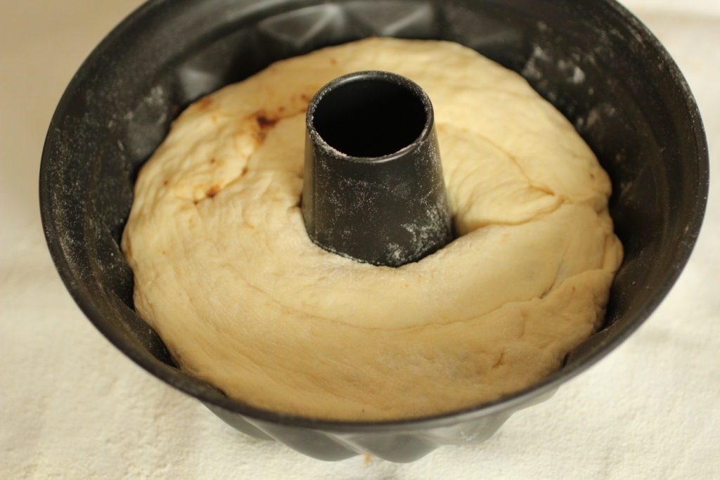 Переложить в кольцевую форму и дать постоять 30 минут.