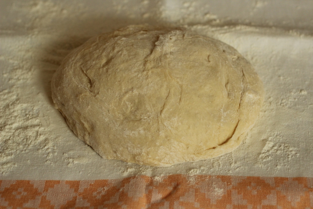 Тесто обмять и выложить на присыпанное мукой льняное полотенце.