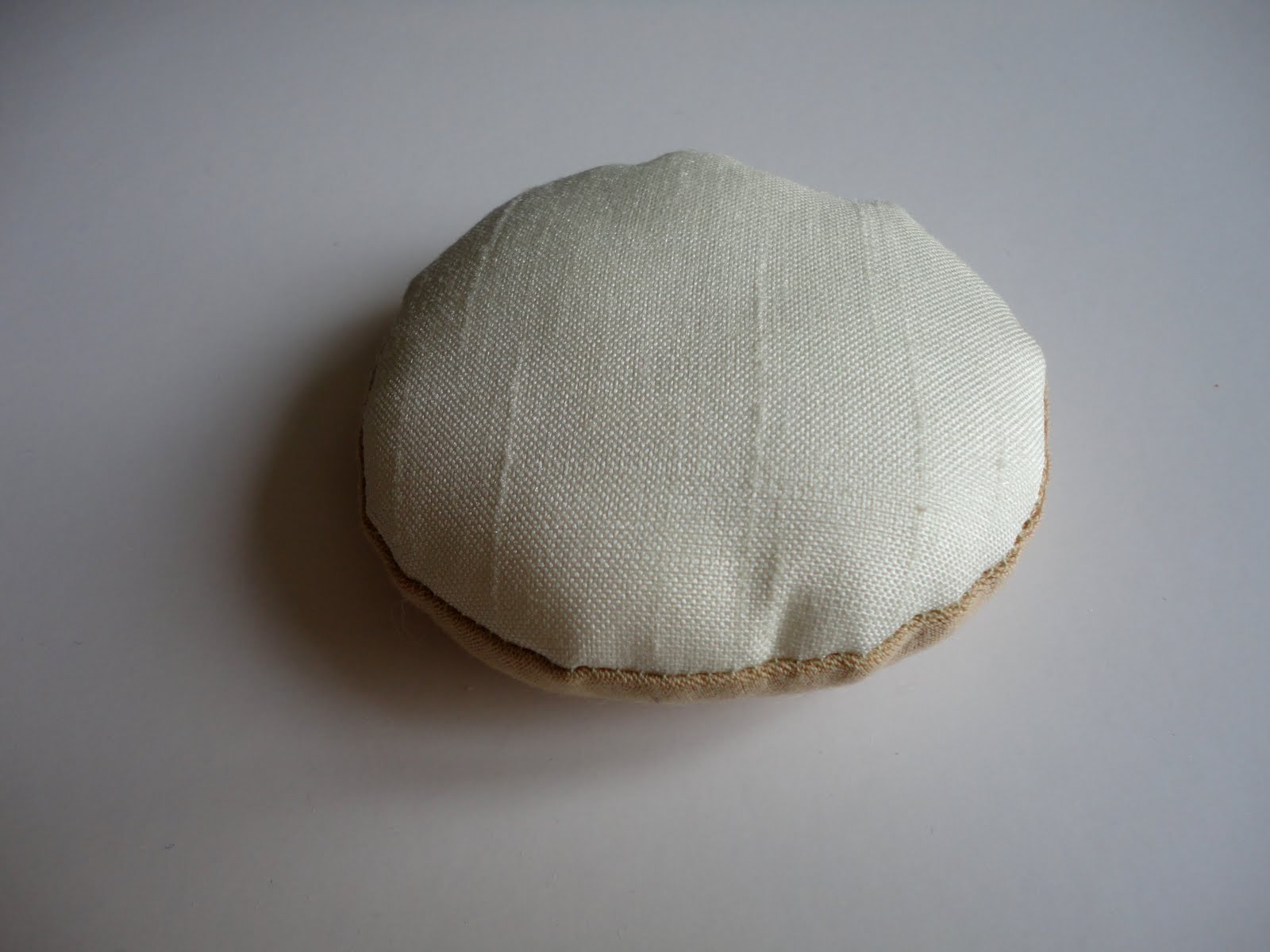 Для этого нам нужно выкроить два одинаковых круга диаметром 9 см. + 0,5 см. края. Прострачиваем на машинке, оставив «окошко» для выворачивания (2-3 см.).Выворачиваем заготовку. Если ткань не помялась, можно не утюжить.Переходим к набивке. Небольшими кусочками подготовленной набивки заполняем внутренность. Аккуратно зашиваем отверстие ниткой в одно сложение.