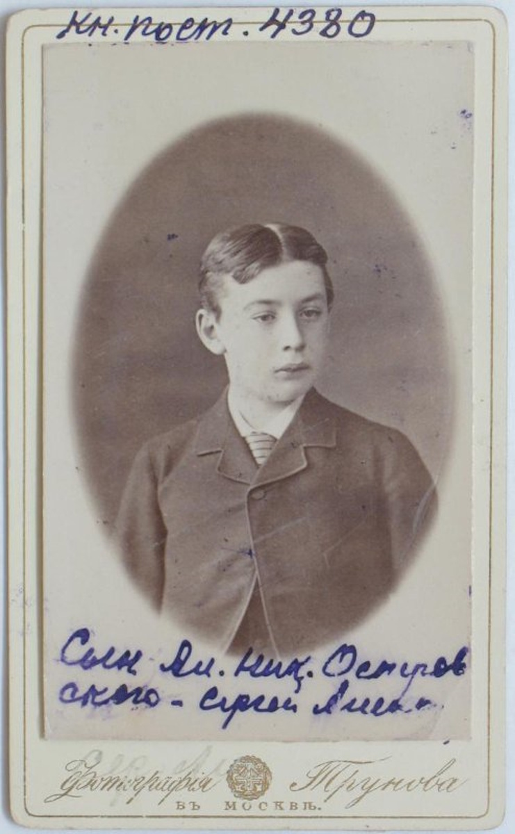 Другой сын драматурга Сергей (1869–1929 гг.), если верить воспоминаниям Склифосовской, был «почтительнейшим» и смелым парнем; он увлекался животным миром: