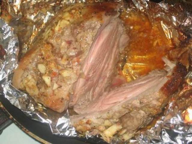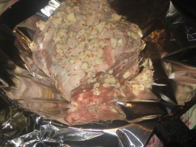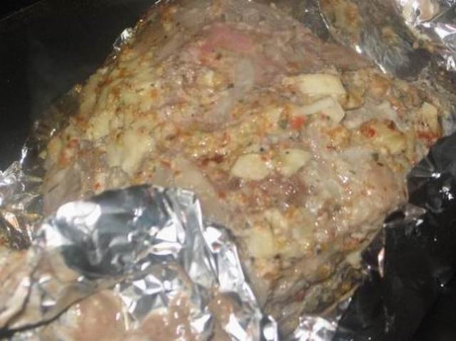 И выкладываем его на фольгу, в которой будем это мясо запекать.