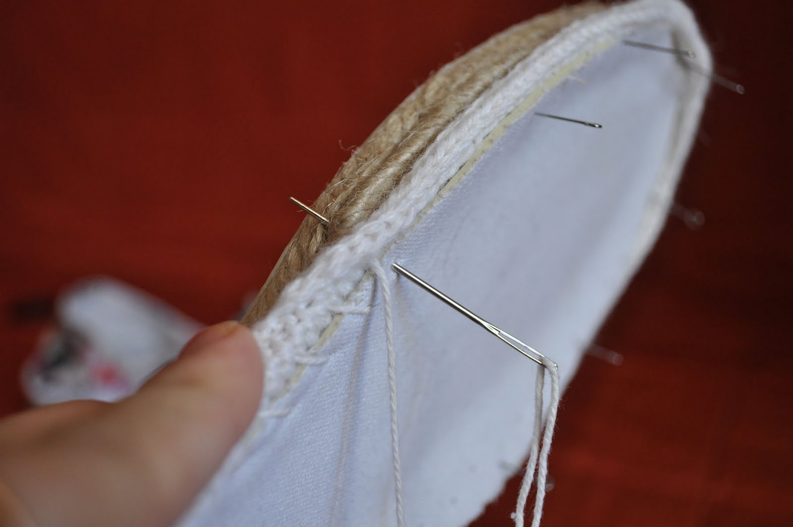 8. пришиваю эту полоску к боковому краю. потом приклеиваю подошву. и в завершение сшиваю край подошвы и второй край пришитой полоски (первым она у нас пришита к боку тапка)