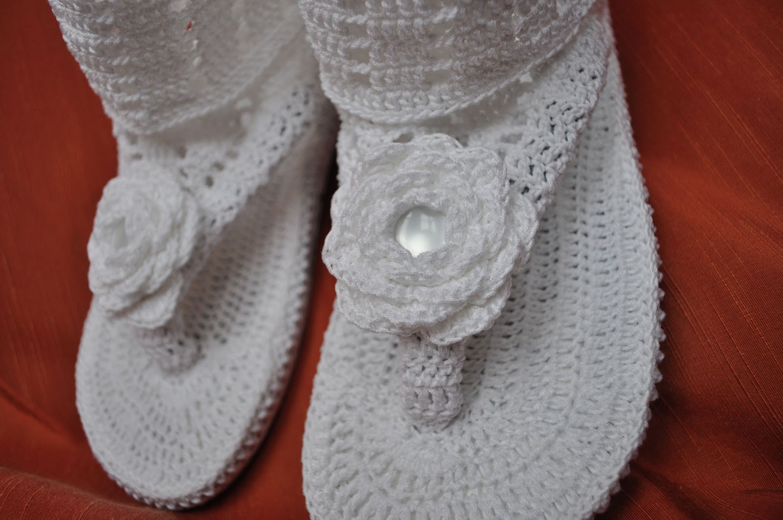 Обычные шлепки-вьетнамки, надо только чтоб полоски были тонкие, ну, или подрезать до нужной ширины (в одном варианте я так и делала) чтоб при обвязке не толсто получилось.