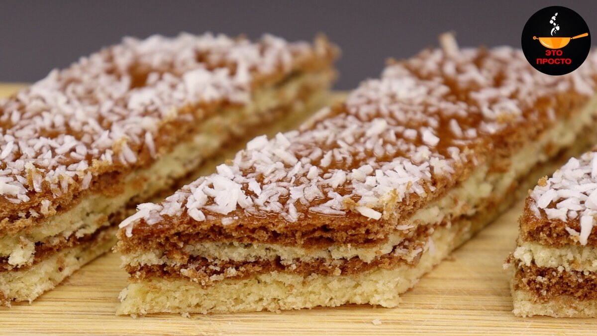 После того, как тесто полностью пропечётся, достаём его из духовки. Сразу же, пока оно горячее, смазываем мёдом или густым вареньем и присыпаем поверхность кокосовой стружкой или дроблёными грецкими орехами.