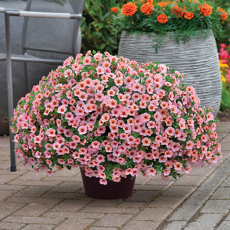 Масштаб: Серии Million Bells или Superbells не дают длинных плетей (максимум 40–50 см), но формируют плотный шар, усыпанный тысячами цветков диаметром 2–3 см.