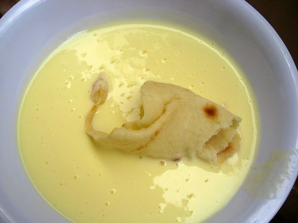 Кефир размешайте с яйцом...Рвем лаваш на части..окунаем в кефир