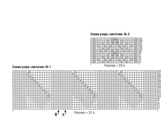 Далее вязать прямо, пока полотно не составит 23 см от разделительного ряда, закончить в нечетном ряду схемы.