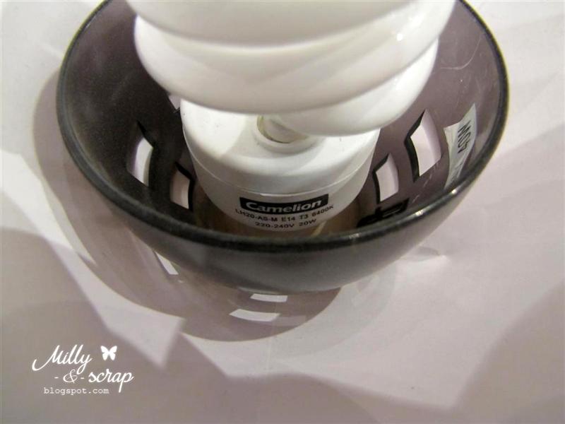 На каждый светильник я сделала такие вот простые абажуры из бумаги - они рассеивают свет, а тк энергосберегающие лампы не греются, то и не страшно что они могут загореться. Без абажуров ничего не работало - свет падал лучом и бил в одну точку!