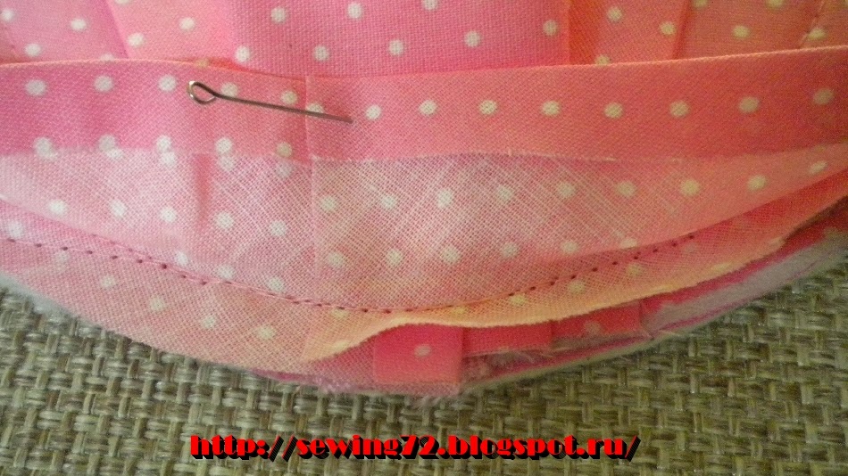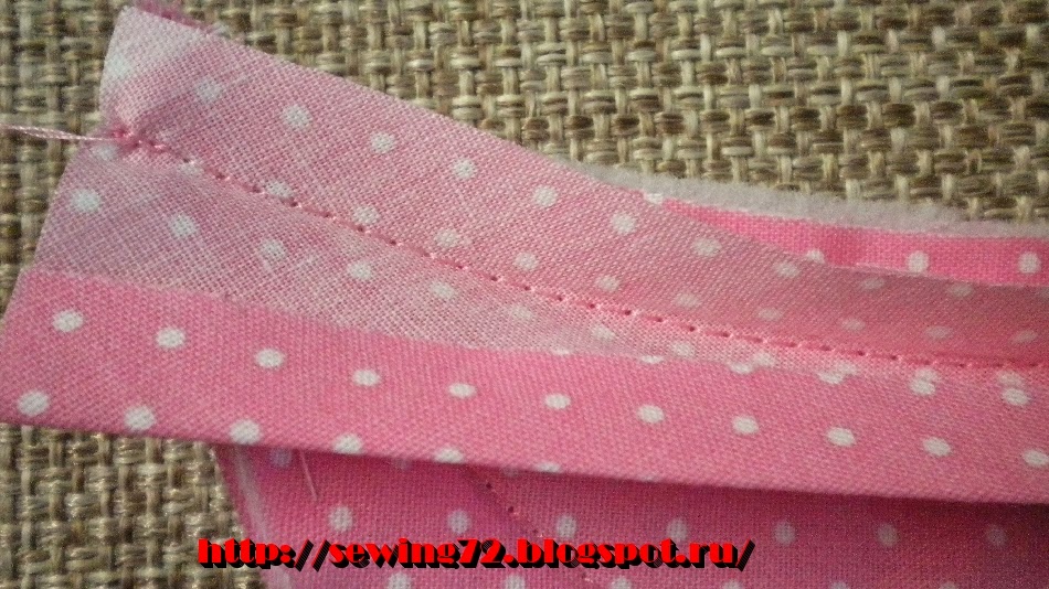 17. Отгибаем косую бейку и настрачиваем декоративную тесьму