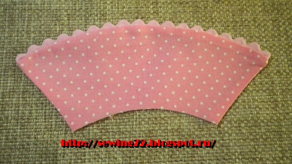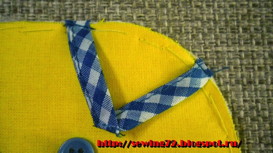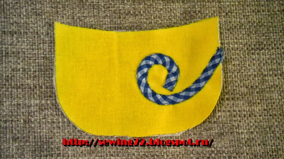 10. Берём детали кроя хвостиков и настрачиваем тесьму.