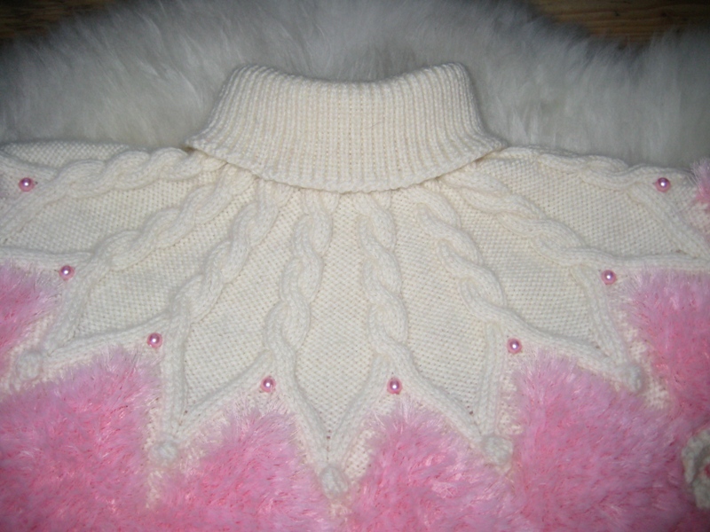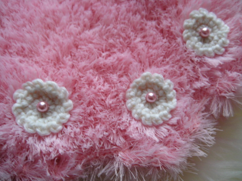 18. Пришить цветочки по краю пончо, украсить изделие бусинками.