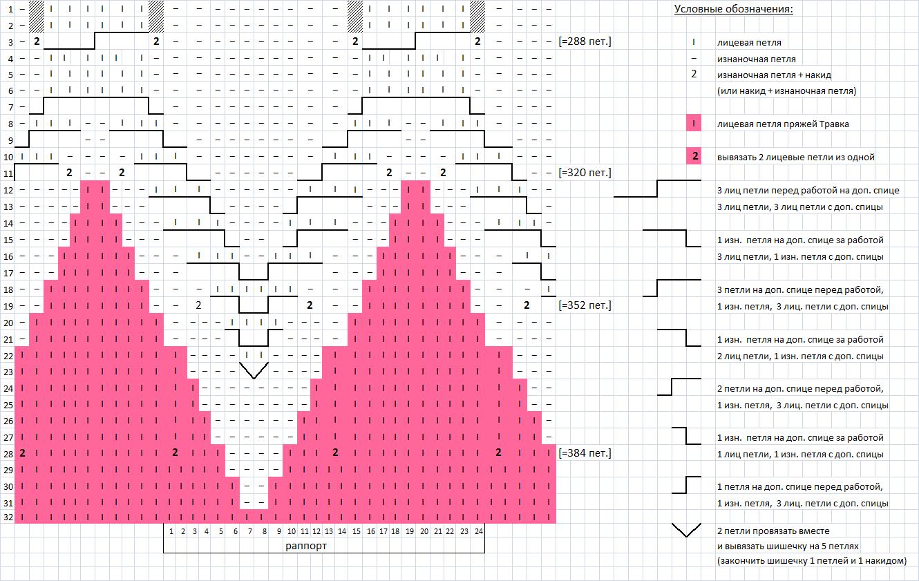 Рисунок 1. Схема перехода с узора "Косы" на вязание "Травкой" (кликните для увеличения)