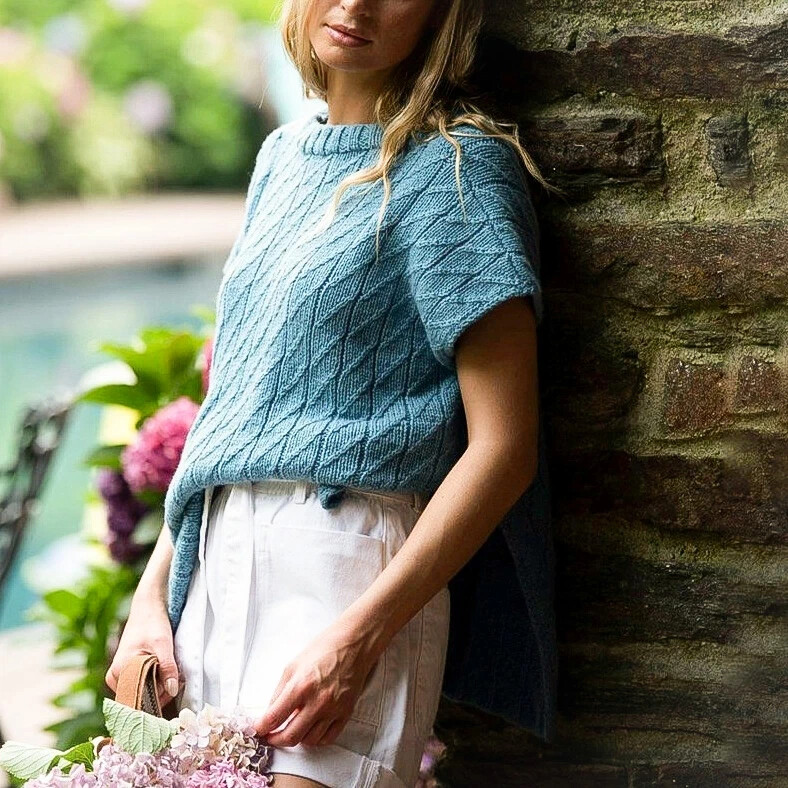 Elena-Dinsk Оригинальное сообщениеголубая безрукавка с глубокими боковыми разрезами (или же топ) Зигфрид, выполненная простым узором