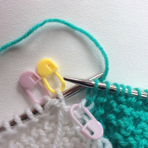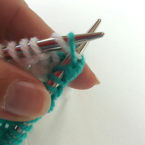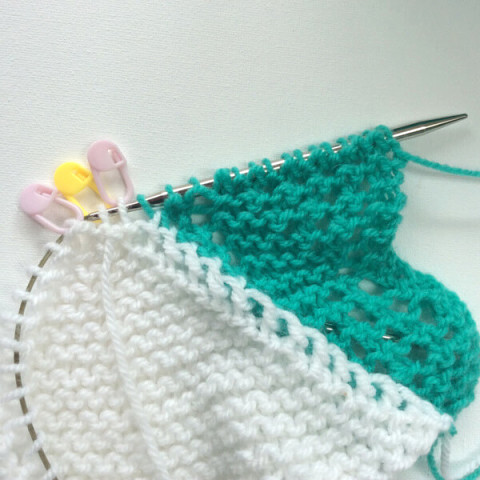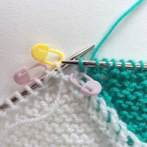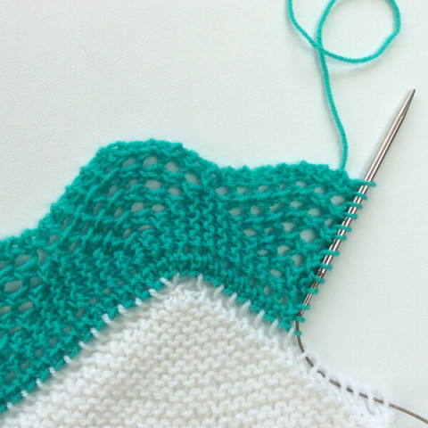 Повторяем этот трюк, задействуя еще 2 отмеченные маркерами петли. Таким образом провязали 12 рядов каймы,а подняли только 3 петли основы.