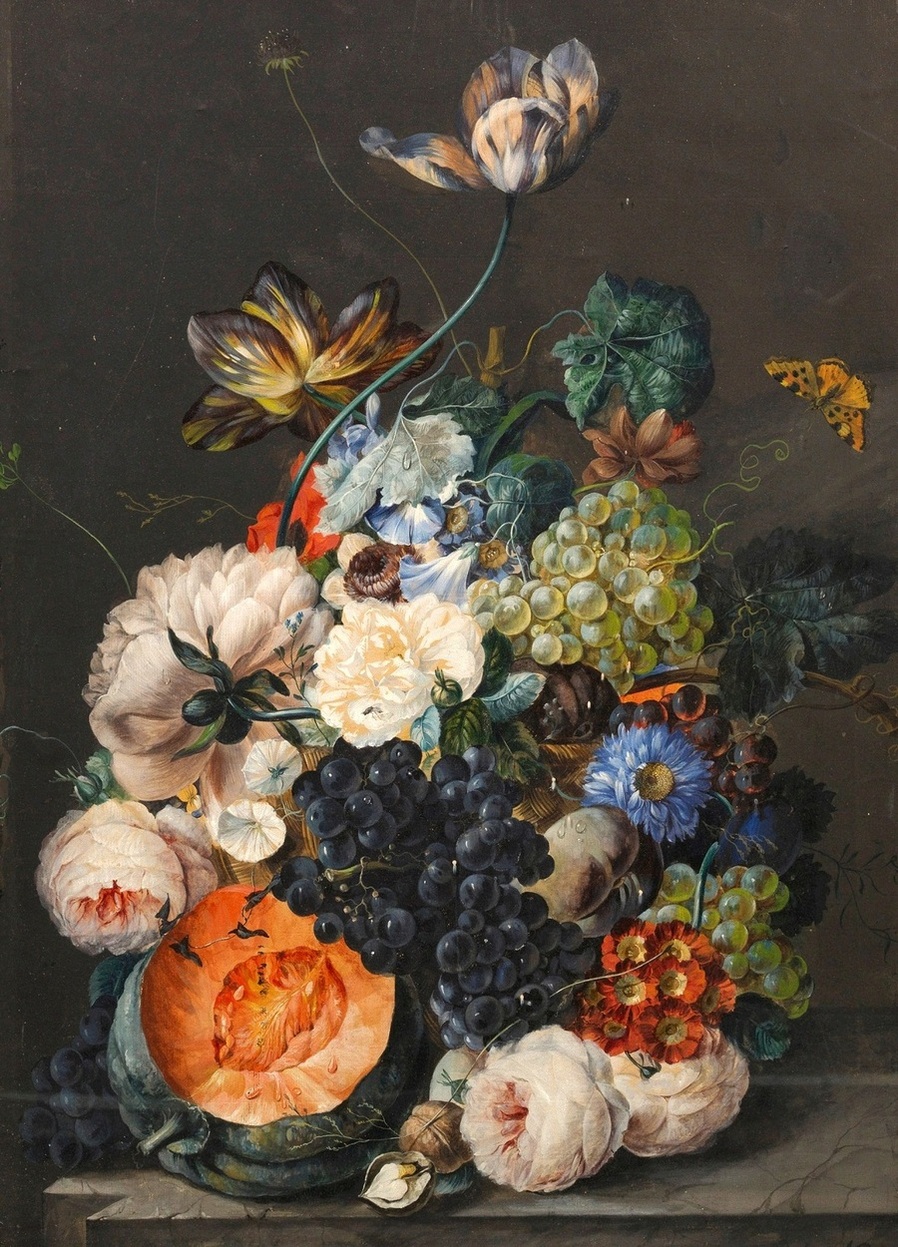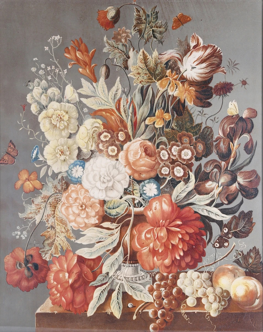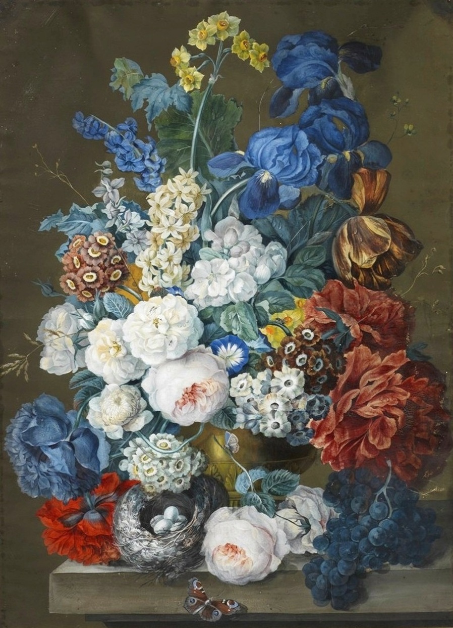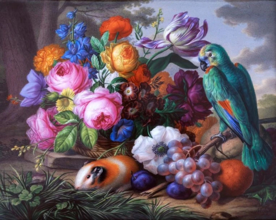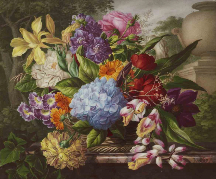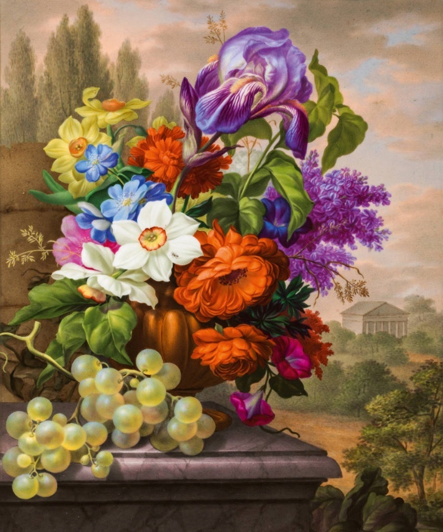С наступлением эпохи бидермейера цветочная живопись стала чрезвычайно популярной и ее также можно было найти на больших фарфоровых пластинах.
